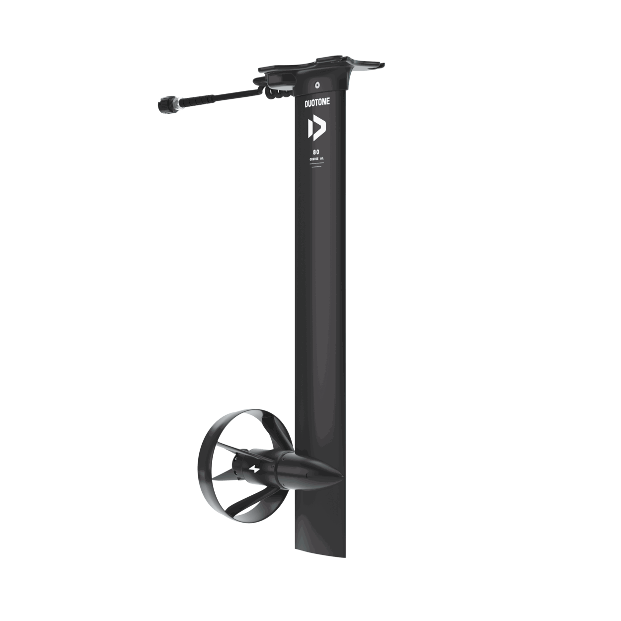 The Cruise Mast AL, made from aluminum, is 80 cm long and therefore slightly shorter than the eMast AL. It is particularly well-suited for beginners and intermediate foilers who want to improve their foiling skills or experience their first glides on rolling swell. The eMast AL Cruise is extremely stiff and provides a direct, responsive feel.The powerful motor is mounted low on the mast, 15 cm above the fuselage, and equipped with a two-blade folding propeller. Due to the exposed propeller, we recommend that especially beginners install the optional propeller guard. Its hydrodynamic design helps keep drag—and therefore increased energy consumption—as low as possible. However, even with the guard, caution around the propeller is still necessary.All components of the Foil Assist system are compatible with the other mast options, allowing you to easily expand your setup. With a wide selection of fuselage adapters — including, in addition to Duotone, ten other options such as F-One, Armstrong, Gong, Axis, Lift, North, Code, Sab, AFS, and KT — the Foil Assist can be seamlessly combined with most foil systems. It mounts to the board just like a traditional mast.The following items are included in the eMast AL Cruise Set:Foil Assist Cruise Mast AL including motor, bell, regular propeller blades, regular cable, and leashPropeller guardCruise eMast coverMotor bell & propeller coverScrew set and toolsCable fastener VSpare regular propeller bladesBattery bag