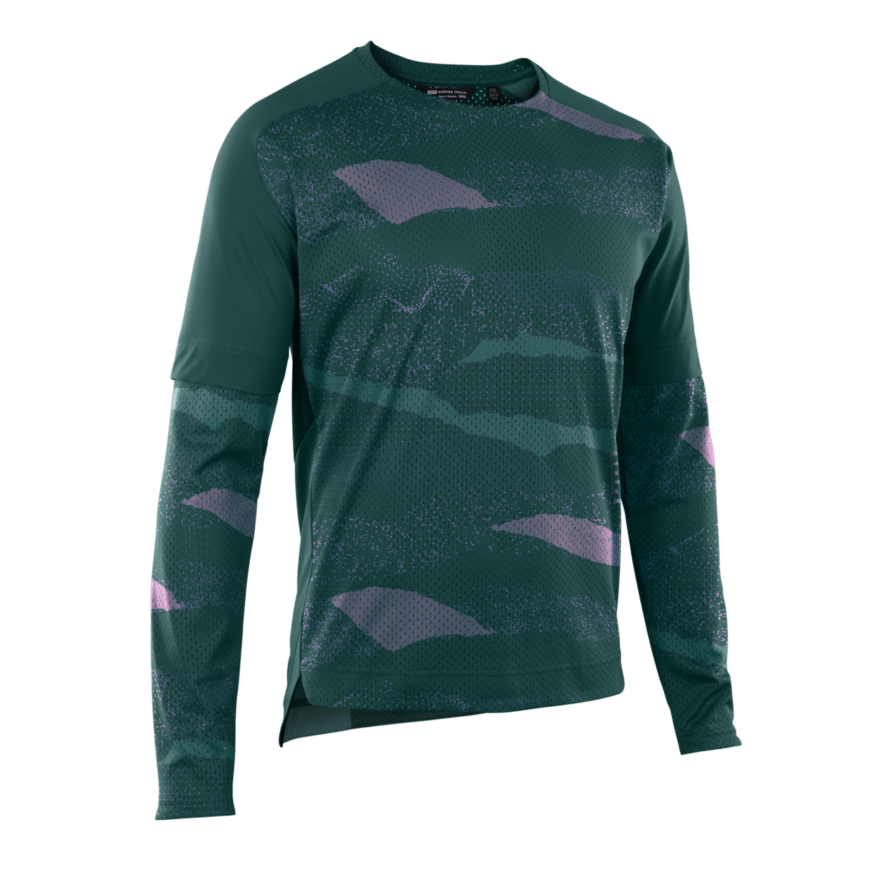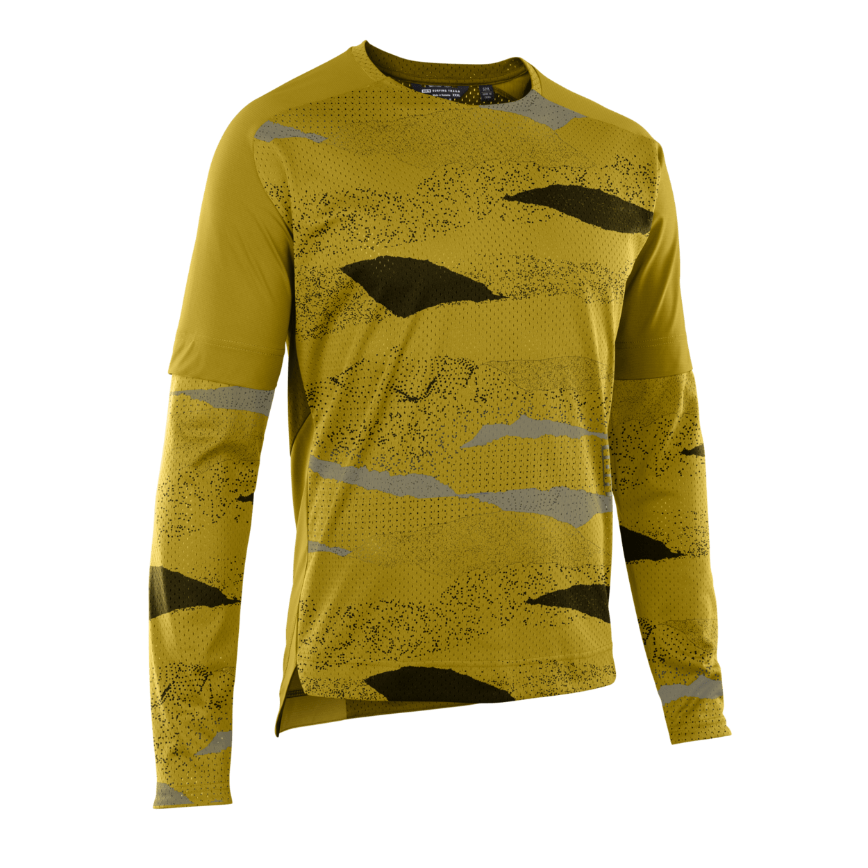 The ION Scrub long-sleeve MTB jersey comes in a loose fit with a race-inspired breathable and durable fabric mix. The main body is recycled venting mesh fabric for breathability with Power Knit inserts on the most exposed areas. Power Knit is a recycled polyester/polyester mix that uses a special tight knitting technique, like woven fabric, so fibers are not easily snagged.